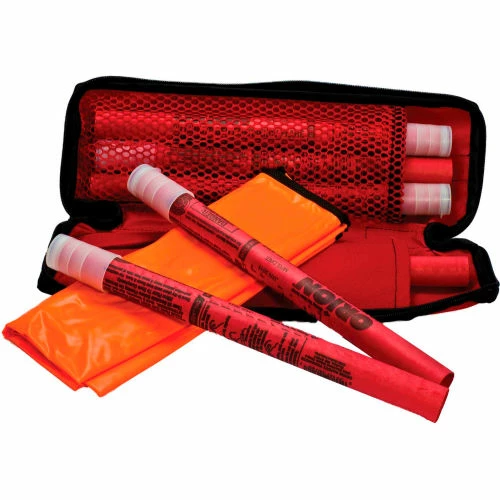 The original highway flare kit ha a heavy duty polyester bag to keep the contents together. Secure the kit in the trunk or under a seat of the vehicle using the touch fasteners on the back of the bag.