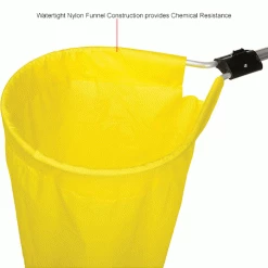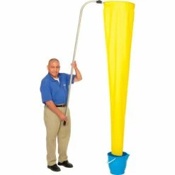 Heavy-duty drench shower tester provides a convenient way to comply with ANSI specifications for weekly testing on all drench showers without getting wet. A funnel directs water to a drain or bucket (not included) and prevents splashing of the surrounding area. The aluminum handle provided makes it easy to position the funnel under the showerhead.