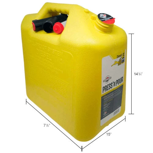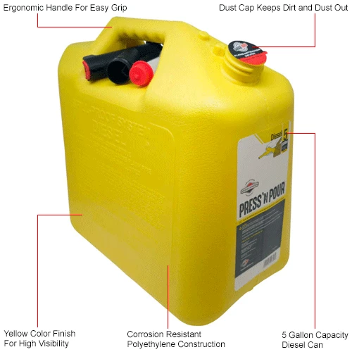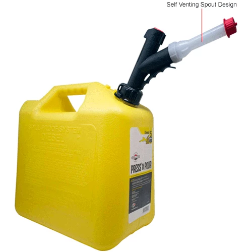 The Garage Boss Press ‘N Pour 5 Gallon Diesel fuel filling system is the perfect solution to keep your medium to large size diesel powered equipment running year round. Whether it be for a diesel powered generator or professional landscaping equipment, the ergonomically friendly design makes fueling your equipment easy and clean. This is a Briggs and Stratton endorsed product.