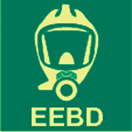 7015 – IMO Signs – For: EEBD – Size: PP 6″ x 6″. Printed on flexible photo luminescent high performance material with a high tack adhesive backing.