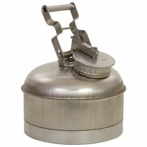 This Disposal Can holds up to 2-1/2 Gallons. Stainless steel construction. For intermediate station for temporary storage of liquid chemical wastes. FM approved. Wide 4″ spout and cap that locks open to 80 degree angle for easy filling. Cap assembly opens automatically to relieve excessive internal vapor pressures. Can has flame arrestor, a free-swing handle and auto vent cap.