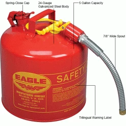 Eagle Mfg Eagle Type II Safety Can with 7/8" Spout – 5 Gallons – Red
