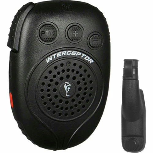 The Interceptor Bluetooth Wireless Speaker Microphone features 2 PTT (push-to-talk) buttons & simultaneous listening. You can pair to 2 different Bluetooth enabled devices (radio/radio, radio/smartphone, smartphone/smartphone). Plus, listen to dual audio from two Bluetooth devices at the same time. Newly upgraded firmware allows the Interceptor to pair to radios with built-in Bluetooth without the need of an external Bluetooth adapter dongle. This equates to big cost savings for you. In addition to radio pairing, the new upgrade includes POC apps (Push-to-Talk) over Cellular pairing. Other benefits include 20+ hour talk time and a 3.5mm earpiece jack for field versatility.