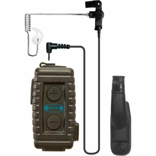 Bluetooth Lapel Microphone technology has arrived for the two-way radio user! The NIGHTHAWK is the first and only Bluetooth Lapel Microphone that delivers secure encrypted Bluetooth technology, full-shift 12 hour talk time, easy pairing, no connectivity loss, and fully functional PTT. The unit features a replaceable professional earpiece with a patented Fin Ultra ear tip that plugs into a 3.5 audio jack on top of the microphone. You can also plug in additional earpieces for field versatility. The battery is rechargeable via a mini USB port located on the side of the microphone or the battery can simply be replaced. The BLUEWI Nighthawk delivers on-the-go audio benefits anytime, anywhere. New firmware supports radios with built-in Bluetooth (no Bluetooth adapter required) and is compatible with POC (Push-to-Talk Over Cellular) Apps.