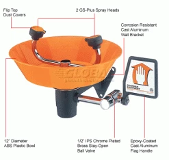 Units have two GS-Plus spray heads to deliver water in a soft, widespray rather than a solid, narrow stream. The user receives more water over a wider area. Spray heads have “flip top” dust cover, internal flow control and filter to remove impurities from water flow. 1/2″ IPS stay open ball valve permits “hands free” operation.