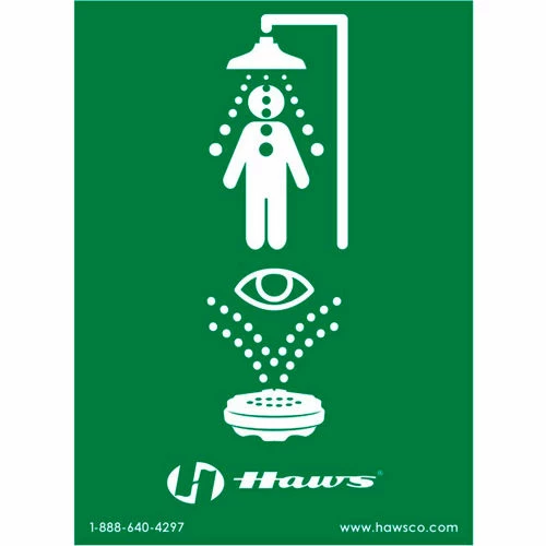 Model SP178 is a vertical, universal combination emergency shower and eyewash sign, made of green plastic. 8″ x 10-3/4″ H (20.3 x 27.3 cm).