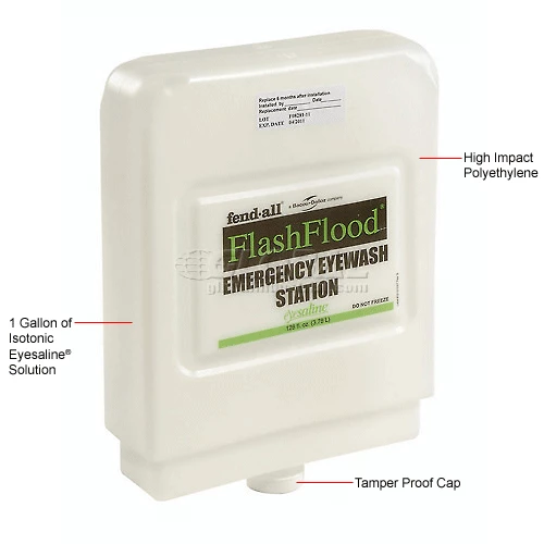 Isotonic Eyesaline concentrate which kills bacteria and increases life of solution. Constructed of rugged high impact polyethylene. 1 gallon refill for Model 829007.