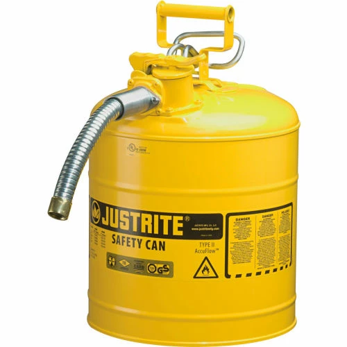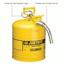 Going beyond protection and compliance, AccuFlowâ„¢ Type II Safety Cans provide fast, precision pouring when handling flammable liquids. Patented, innovative manifold automatically vents for smooth, glug-free liquid flow, while the comfortable Safe-Squeeze® trigger offers maximum control when pouring. A 9″ (229mm) flexible metal hose ensures offers targeted pouring into small openings. Fill port with ergonomically designed handle makes filling easier than ever.