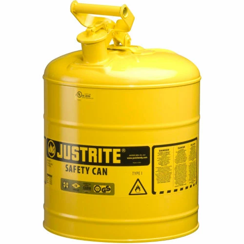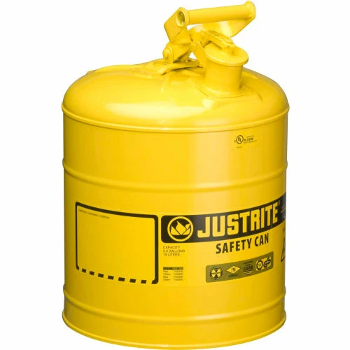 Justrite® Type I Steel Safety Can, 5 Gallon (19L), Self-Close Lid, Yellow, 7150200