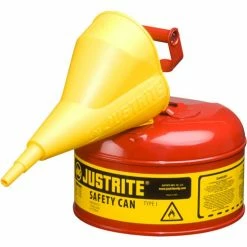 Justrite® Type I Steel Safety Can With Funnel, 1 Gallon (4L), Self-Close Lid, Red, 7110110