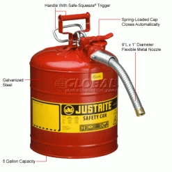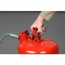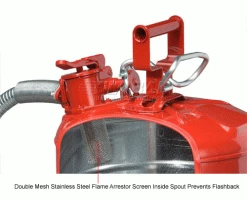 Handle flammable liquids safely and easily! Engineered to help prevent flammables from igniting and to protect personnel from the dangers of fire and explosion. Flashback is prevented by double-mesh flame arrestor screen inside spout. Spring-loaded cap closes automatically after pouring. Long-life synthetic gasket resists virtually all liquids and maintains a tight seal.