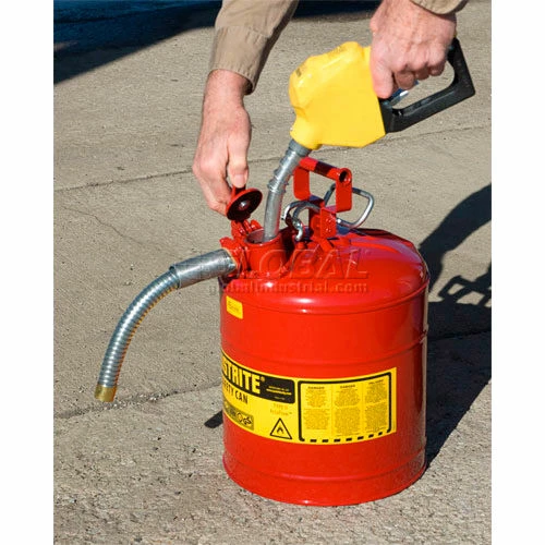 This Type II Filling Can has an independent rapid fill opening and a 9″L flexible metal nozzle.