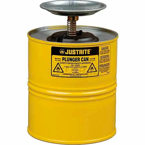 Justrite Plunger Can, 1-Gallon, Yellow, 10318