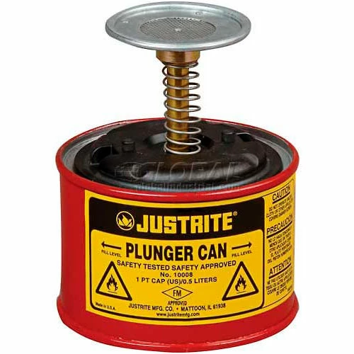 Justrite Plunger Can, 1-Pint, Red, 10008