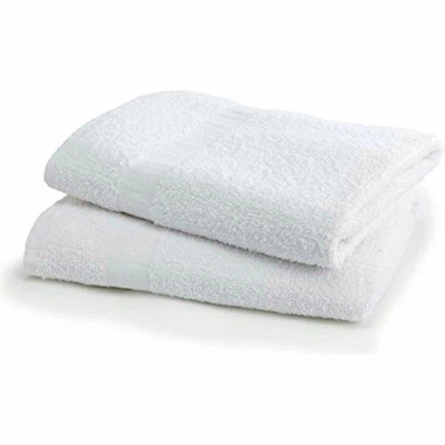These white bath towels are made from 100% cotton, which makes them soft and absorbent. They are popular for hospitals, fitness centers, hotels, spas, pools, and much more. Dimensions are 22 x 44 inches.
