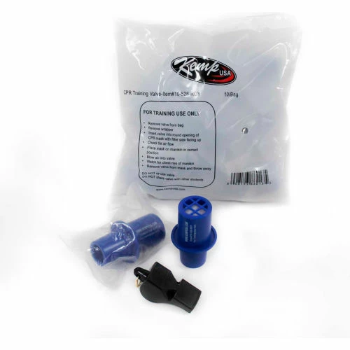 Single use training valves are an economical alternative to replacement valves when teaching with rescue masks. Valve fits adult, child, and infant rescue masks. Packaged as 10 valves per bag, rescue mask sold separately, for training use only. Has a unique filter to mimic the breath needed to give mouth to mouth.