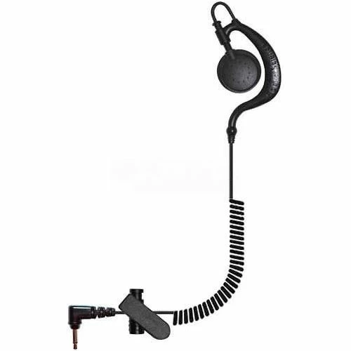 Listen-Only Earpiece with short cord for collar-length reach. Sturdy “C” adjustable earloop with clear-audio speaker that rests on the ear. 3.5mm connector. Swivels for Left or Right Ear.