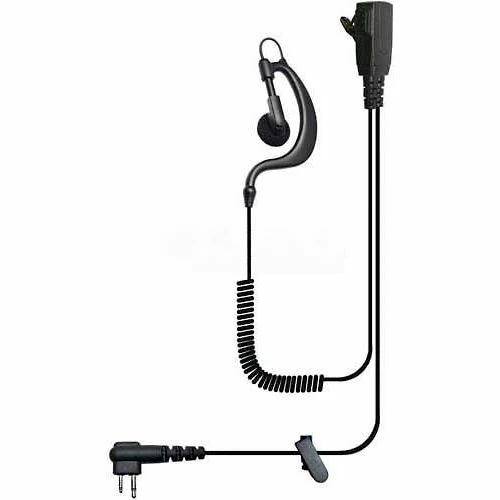 Split-wire security kit. Adjustable earbud with earloop, PTT button/microphone combo with steel clothing clip, left or right ear usage. Compatible with Blackbox+, Motorola DTR Series, CLS Series, RDX Series and other 2 pin Motorola Radios.