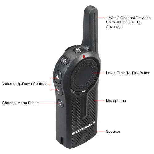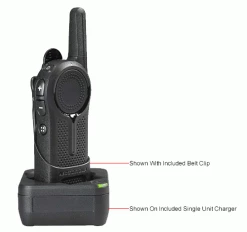 The ability to communicate and solve problems in real time is the cornerstone of good business operations. With the Motorola Solutions DLR digital radio, your team can quickly and easily communicate to improve operation efficiencies, solve problems rapidly, address unexpected situations and improve customer satisfaction. This lightweight radio, with its sleek styling, is a simple yet powerful collaboration tool. Its unique features will take your organization to a new level of performance and operational excellence. The DLR1020 is a 1 watt, 2 channel two-way radio for clear, interference-free, enhanced private communications. Includes private reply, Page All/Call All available, direct call, instant mute feature, voice prompts, talk permit tone and home channel revert. These radios have a long battery life. CPS programming software is a download on the Motorola Solutions website. Meets military specifications. The DLR Series has a 12 unit charger available, but is also compatible with the CLS Single and Multi-Unit chargers so migrating to this new digital radio platform with expanded range is both easy and cost effective.