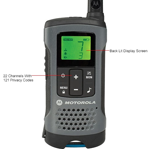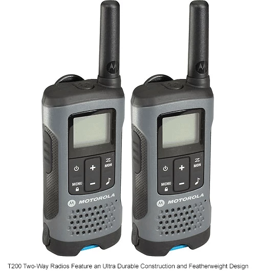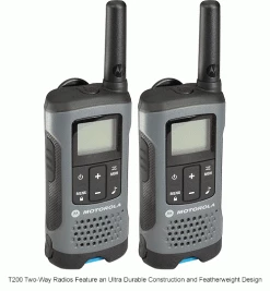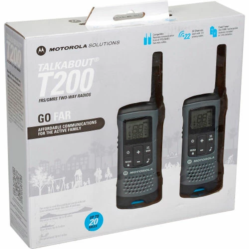 With a range of up to 20 miles and the freedom to communicate wirelessly, the 20-Mile Talkabout T200 2-Way Radios from Motorola Solutions let you stay in touch, whether you’re using them on the playground, in the neighborhood, during a camping trip or in the mall. Thanks to the featherweight, compact design, the T200 is comfortable to use. Don’t worry if you drop it; this durable radio can take it. And, with 22 channels and the standard scan feature, it’s easy to stay in touch while you are out and about. The range in real life conditions can be reduced from maximum range; Mountain to Valley: Up to 20 miles, Open Water: Up to 5 miles and Neighborhood: Up to 1 mile