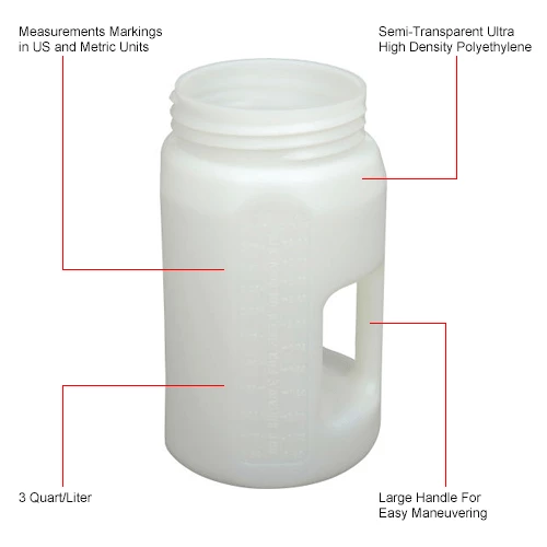 This Oil Safe 3 Liter / 3 US Quart Drum is a very practical size for servicing small to mid-range equipment filler applications. Fully interchangeable with Oil Safe lids these drums have a extra wide neck opening for rapid pouring and easy cleaning. Comes with one contents label. Marking increments on drum: .25 Quart/Liter.