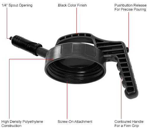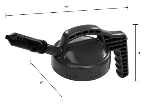The Oil Safe Mini Spout Lid is ideal for lubrication jobs where equipment filler holes are small. Outlet diameter approximately 7mm / 9/32″. Spout is approximately 4.75 inches.
