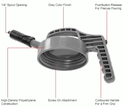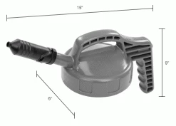 The Oil Safe Mini Spout Lid is ideal for lubrication jobs where equipment filler holes are small. Outlet diameter approximately 7mm / 9/32″. Spout is approximately 4.75 inches.