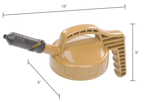 The Oil Safe Mini Spout Lid is ideal for lubrication jobs where equipment filler holes are small. Outlet diameter approximately 7mm / 9/32″. Spout is approximately 4.75 inches.