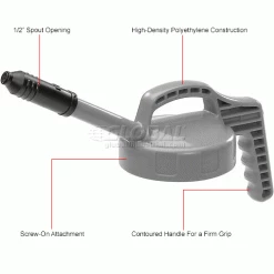 The Oil Safe Stretch Spout lid is designed for use where precise pouring of lubricants is required including hard to reach areas. Ideal for lower viscosity oils (Less than ISO 220). A Stretch Spout hose extension is available.