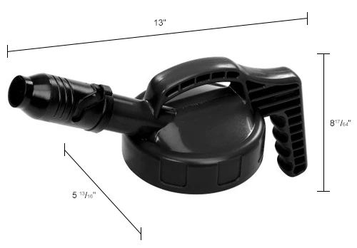 This Oil Safe wide spout model is especially designed for applications where a high lubricant flow is desired. Spout has a 1″ opening. Spout is approximately 4-3/4 inches. Stumpy Spout Extension hose available.